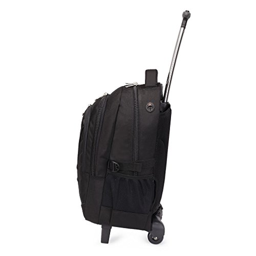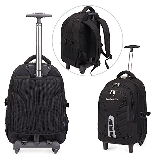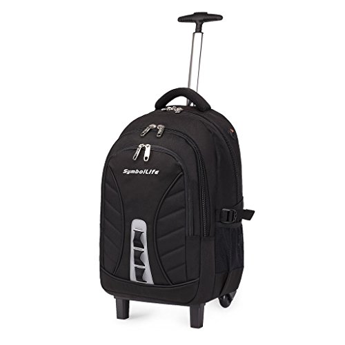 Auf den Rücken getragen entfaltet der SymbolLife Rucksacktrolley seine ganze Funktionalität. Es wurde mit Mesh-Gewebe gearbeitet, sodass es nicht zum Schwitzen beim längeren Tragen kommen kann. Die Schultergurte sind hingegen ergonomisch geformt und erlauben einen hohen Komfort. Bei Bedarf können Sie die Gurte auch verstellen und Ihrer Größe anpassen. Möchten Sie den SymbolLife Rucksacktrolley nicht tragen, können Sie diesen per zwei Rollen auch hinter sich herziehen. Eine Teleskopstange ist in den Rücken integriert und kann leicht herausgezogen werden. Ohne große Umstände passen Sie den Rucksack mit Rollen anschließend Ihrer Größe an. Nebenbei liegt noch ein Gurt mit Schwamm vor, sodass Sie Tasche bequem tragen können.